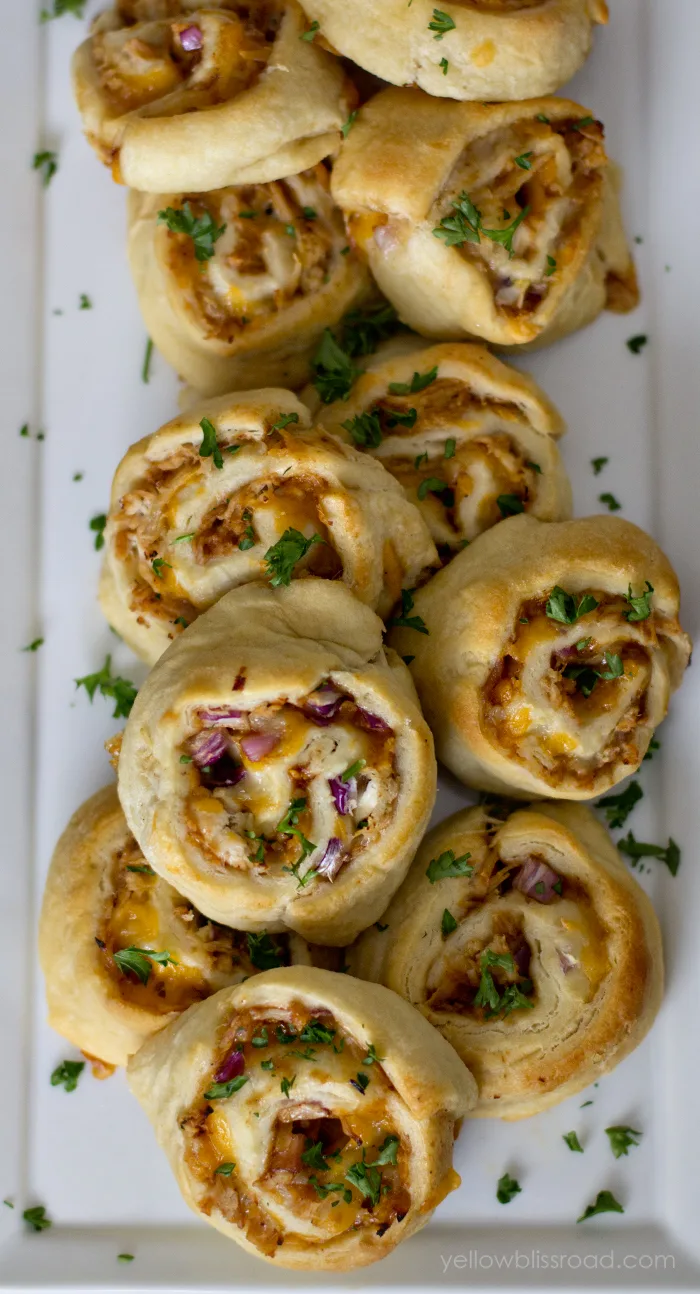 Your favorite BBQ chicken pizza rolled up into a festive, bite size package!